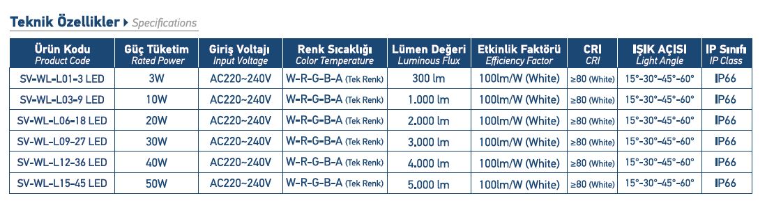 SV-WL L01 / L03 / L06 / L09 / L12 / L15